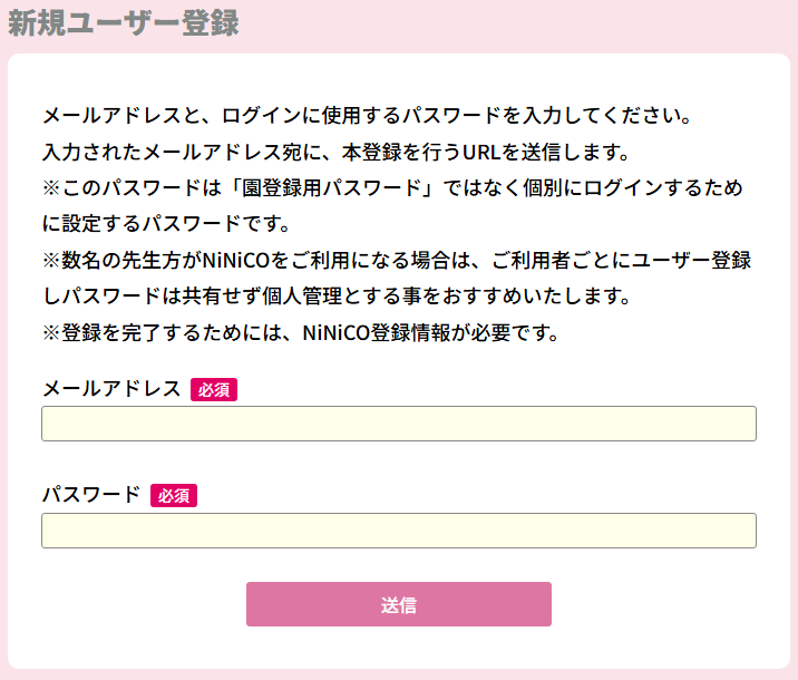 ※NiNiCOにログインするための情報です